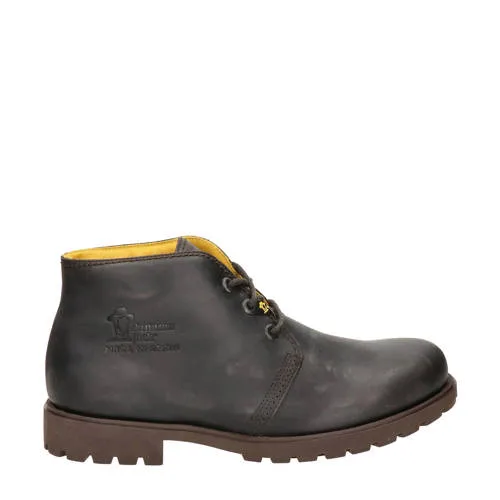 Heren enkelboot van Panama Jack uit de Nelson schoenencollectie, uitgevoerd in waterafstotend leer. Het model is voorzien van een voering van leer, een uitneembaar voetbed van leer, sierstiksels en een profielzool.