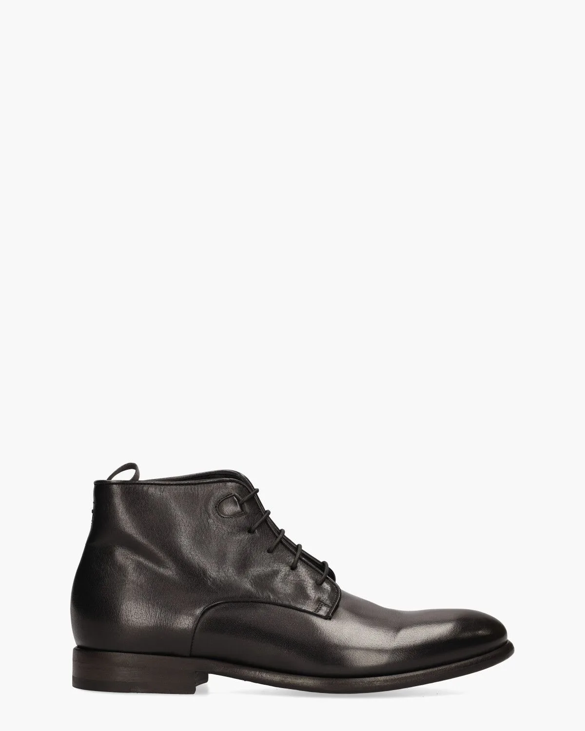 De Pantanetti 10941E veterboot voor heren in zwart kalfsleer is een voorbeeld van tijdloze klasse en Italiaanse ambacht. De gladde finish en glans geven het bovenwerk een elegante uitstraling, terwijl het verfijnde stikselwerk en de afgeronde neus zorgen voor een stijlvol, ingetogen silhouet. De schoen is afgewerkt met een stevige leren zool
