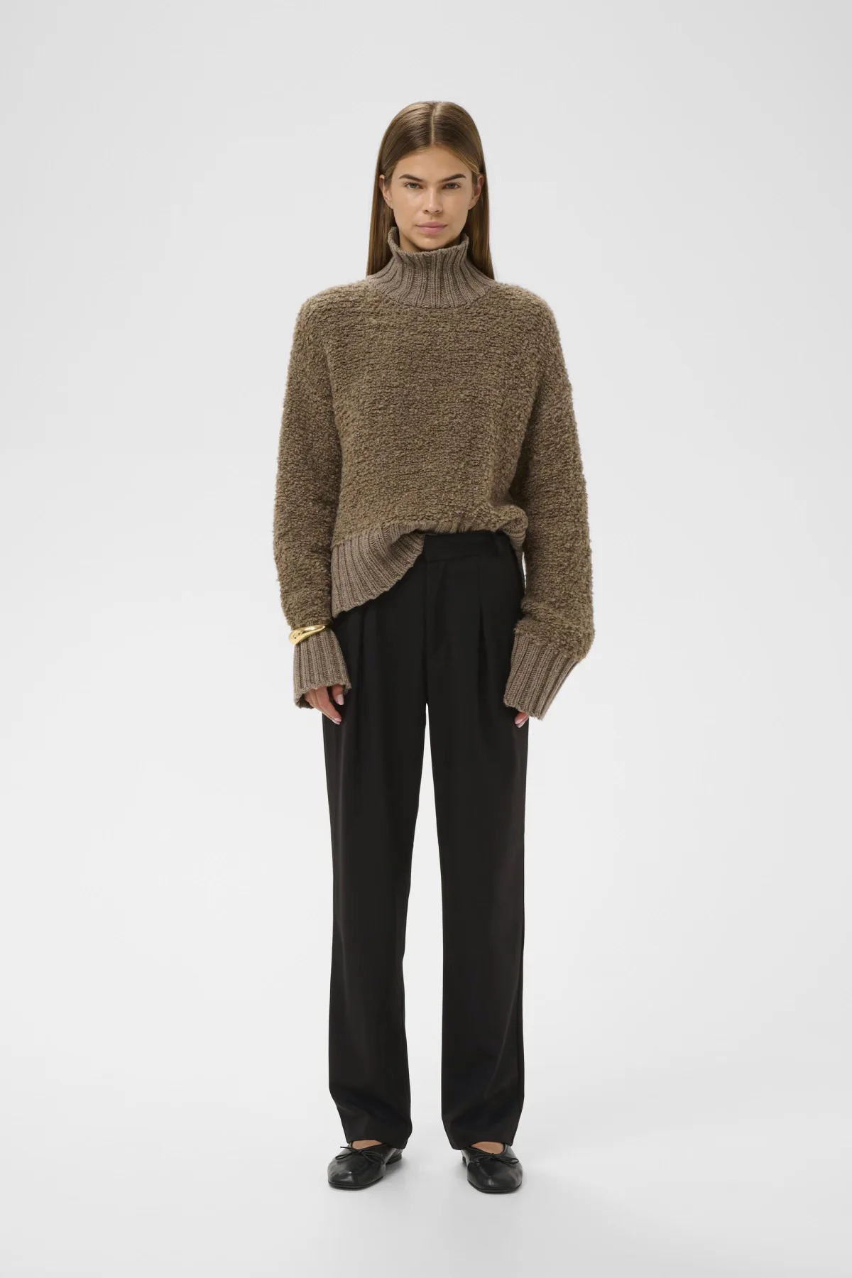 Deze tailored broek heeft een rechte pasvorm, frontplooien en riemlussen. Het ontwerp is strak met een zachte afwerking en een lange pijp.