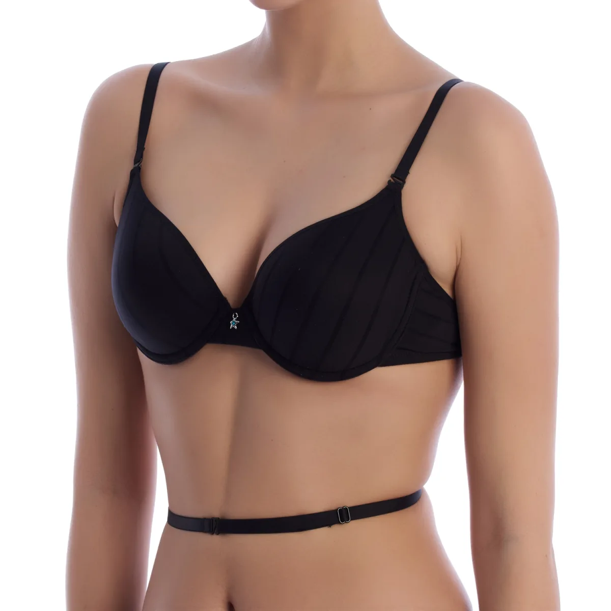 Deze PAOLA multi-positie bh van Selene herdefinieert comfort en stijl met een modern design en details ontworpen voor de vrouw van vandaag. Ideaal voor wie op zoek is naar een veelzijdig accessoire dat elegantie en functionaliteit combineert. Details: - Verstelbare bandjes voor kriskras, rugloos of lage rug stijlen. - Voorgevormde cups met beugel. - Verstelbare onderband. - Decoratieve hanger in het midden. - Streepmotief. Deze bh is de ideale optie voor wie op zoek is naar een comfortabel, aanpasbaar accessoire vol unieke details. Samenstelling: 84% Nylon, 16% Spandex Onderhoud: Wassen op maximaal 30ºC. Gebruik geen bleekmiddel. Gebruik milde wasmiddelen. Niet in de droger drogen.