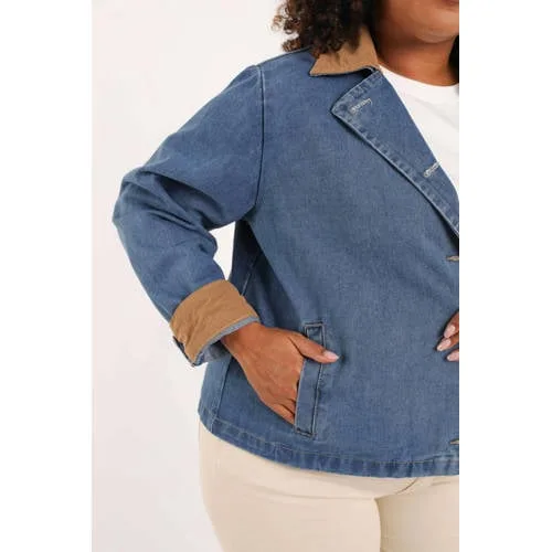 Deze Paprika denim jas is een praktische basic voor elke dag, speciaal ontworpen voor grote maten. De medium blue denim kleur met camel accenten geeft een frisse, tijdloze uitstraling. Door de middenlengte valt de jas mooi over de heupen, wat zorgt voor een rustig en verzorgd silhouet.Details die je elke dag draagt Gemaakt van 100% katoen, voor een stevige maar toch soepele denim kwaliteit Middenlange fit die prettig over de heupen valt Klassieke kraag en rechte mouwen voor een rustige, dagelijkse look Zijzakken voor het warmhouden van je handen of het meenemen van kleine essentials Camelkleurige corduroy details, die zorgen voor een subtiel kleurcontrast Effen dessin, makkelijk te combineren met je bestaande garderobe Geschikt voor het lenteseizoen en de dagelijkse 'daily' outfits Onderdeel van het Paprika assortiment in grote maten, met aandacht voor pasvormEenvoudig combineren in jouw dagelijkse looksDeze spijkerjas past goed over een T-shirt en een comfortabele broek voor een relaxte dag, maar kan ook prima over een jurk of rok als extra laag op frisse lentedagen. De medium blauwe kleur combineert mooi met wit, camel, zwart en zachte pasteltinten.Paprika, gespecialiseerd in grote matenPaprika richt zich volledig op vrouwen met een maatje meer en ontwerpt kleding met aandacht voor pasvorm, comfort en actuele trends. De collecties zijn gemaakt om dagelijks te dragen, met modellen die rekening houden met vormen en verhoudingen. Zo voeg je met deze jas een betrouwbaar en doordacht kledingstuk toe aan je garderobe.Een praktische spijkerjas waar je het hele seizoen naar grijpt.