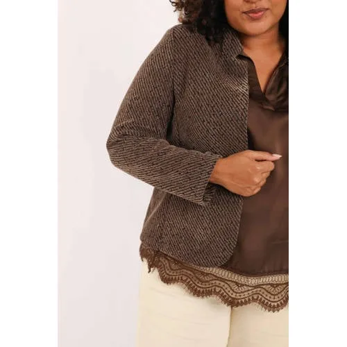 Fris je garderobe op met dit lichtgewicht, bruine jasje van Paprika. Dit Paprika dames jasje in bruin is speciaal ontworpen in grote maten en heeft een rustige uitstraling. De ronde hals en de rechte snit geven een nette look, terwijl de lange mouwen zorgen voor net dat beetje extra warmte op frisse lentedagen. Door het tijdloze ontwerp is dit jasje een veelzijdig bovenstuk voor al je dagelijkse plannen.Details die het verschil maken Speciaal ontworpen voor grote maten, met een comfortabele pasvorm Bruine kleur die makkelijk te combineren is met lichte en donkere tinten Lange mouwen, ideaal voor het voorjaar en koele avonden Ronde hals voor een zachte belijning Zonder zakken voor een rustig en gestroomlijnd silhouet Licht jasje, perfect als extra laagje in het lente seizoenVoor werk, weekend en alles ertusseninDit jasje draag je net zo makkelijk over een T-shirt met jeans als over een jurk of blouse. De bruine kleur past goed bij neutrale tinten zoals crème, wit en zwart, maar ook bij warme kleuren. Handig als je één jas zoekt die je zowel naar kantoor als in je vrije tijd kunt aantrekken.Paprika, specialist in grote matenPaprika richt zich op kleding in grote maten, met aandacht voor pasvorm en draaggemak. De collecties zijn afgestemd op curves en bieden modellen die mooi vallen op het lichaam. Zo kies je voor kleding waarin je je comfortabel en verzorgd voelt.Een jasje dat je in het hele lente seizoen vaak uit de kast pakt.