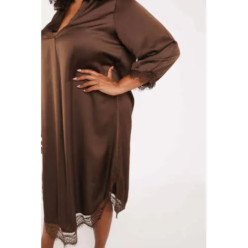 Deze bruine midi jurk van Paprika is een rustige basis voor dagen waarop je er verzorgd uit wilt zien zonder veel moeite te doen. De effen bruine kleur straalt warmte uit, terwijl de midi lengte een elegante uitstraling geeft. Lange, rechte mouwen en een klassieke kraag zorgen voor een nette look die zowel casual als wat gekleder kan.Kenmerken van deze bruine midi jurk Midi lengte die tot rond de kuit valt voor een elegante uitstraling Lange, rechte mouwen die veel bedekking geven en prettig zijn in koeler weer Klassieke kraag voor een verzorgde en rustige look Effen bruine kleur die goed past bij neutrale tinten Zachte stof van viscose die soepel langs het lichaam valt Geen sluiting, de jurk trek je eenvoudig over het hoofd aan Kantdetails voor een extra detail in het ontwerp Zonder zakken voor een glad silhouetGeschikt voor verschillende momentenDeze jurk leent zich goed voor een werkdag, een etentje of een ontspannen dag thuis. De midi lengte en lange mouwen maken het een praktische keuze in meerdere seizoenen.Paprika met aandacht voor rondingenPaprika richt zich op kleding waarin je je vrij kunt bewegen, met modellen die rekening houden met rondingen. De ontwerpen zijn doordacht, met aandacht voor pasvorm, draagcomfort en details die je silhouet ondersteunen, zodat je kledingkast overzichtelijk en veelzijdig blijft.Een bruine midi jurk waar je elk seizoen gemakkelijk naar grijpt voor een ontspannen, maar verzorgde look.