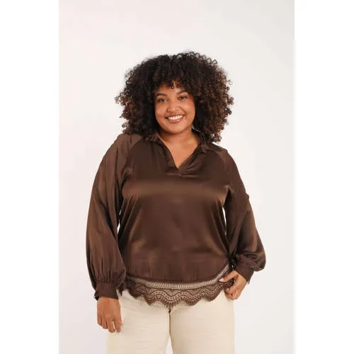 Deze Paprika top met lange mouw is een praktische basis voor elke dag, speciaal ontworpen voor grote maten. De top heeft een klassieke kraag en rechte mouwen die tot over de pols vallen. Door de effen kleur laat je deze top makkelijk terugkomen in verschillende looks, van kantoor tot een ontspannen dag thuis. De decoratieve details van kant geven de blouse een subtiel accent zonder dat het overheersend wordt.Kenmerken van deze dames top Gemaakt van 100% viscose, voelt soepel en zacht aan op de huid Lange rechte mouwen voor extra bedekking en comfort Klassieke kraag voor een verzorgde en tijdloze uitstraling Effen design met kanten details voor een rustige uitstraling met fijne accenten Geen zakken, waardoor de top mooi vlak langs het lichaam valt Onderdeel van het grote maten assortiment voor een pasvorm met meer ruimte Geschikt voor het lente seizoen en dagelijkse outfitsDagelijks draagbaar in veel situatiesVoor een werkdag combineer je deze top eenvoudig met een nette broek of een donkere jeans en flats. In je vrije tijd past de blouse goed bij een comfortabele tregging en sneakers. De soepele stof beweegt met je mee, zodat je je de hele dag vrij kunt bewegen.Paprika, specialist in grote matenPaprika richt zich op vrouwen met rondingen en houdt bij elk ontwerp rekening met pasvorm, comfort en draagmoment. Door slimme lijnen en functionele details sluiten de collecties aan bij het dagelijkse leven, met kleding die zacht aanvoelt en aansluit bij jouw stijl.Een veelzijdig kledingstuk dat je gemakkelijk het hele seizoen door draagt.
