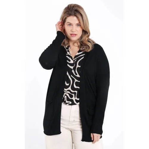 Dit zwart vest voor dames van Paprika is een praktische basic voor elke dag. De effen zwarte kleur laat zich makkelijk combineren en de openvallende hals zorgt voor een ontspannen uitstraling. Door de middellange lengte valt het vest over je heupen, wat zorgt voor een rustige lijn over je outfit. Het model is speciaal ontwikkeld voor grote maten en houdt rekening met extra ruimte waar dat prettig is, zonder te wijd te ogen.Comfortabel vest voor elke dag Gemaakt van 80% viscose en 20% polyamide voor een soepele, zachte touch op de huid Middellange lengte die fijn over heupen en bovenbenen valt Lange, rechte mouwen voor een rustige en elegante uitstraling Openvallende hals zonder sluiting, ideaal om los te dragen over een top of blouse Effen zwart, gemakkelijk te combineren met jeans, jurk of nette broek Geen zakken voor een gladde voorkant Onderdeel van de 'Daily' collectie, geschikt voor alledaags gebruik in het lente seizoen Speciaal ontworpen voor het assortiment in grote matenLaagje voor kantoor, thuis of onderwegDraag het vest over een T-shirt op een ontspannen dag, of combineer het met een blouse en een nette broek voor werk. Door het openvallende model trek je het snel aan of uit wanneer de temperatuur wisselt.Paprika: mode in grote matenPaprika richt zich volledig op mode in grote maten, met aandacht voor pasvorm, draagcomfort en actuele trends. De collecties zijn ontworpen voor vrouwen die kiezen voor kleding die echt is afgestemd op hun maat.Een zwart vest dat makkelijk meebeweegt met jouw dag.