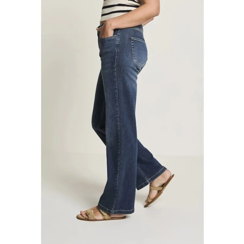 Eve is een 5-pocket model met een hoge taille en een wijde fit. De broek zit wijd op het bovenbeen en loopt daarna recht naar beneden. Deze broek heeft een stoere uitstraling en een fijne fit door het wijde model waardoor sneakers en boots extra leuk staan onder dit model. Een hak onder deze broek zorgt voor een modieuze uitstraling. Pasvorm: High Waist / Wide Leg Kwaliteit: Maak kennis met de Daily Denims lijn van Para Mi! Een groot aanbod van diverse denim kwaliteiten en wassingen die gemaakt zijn van katoen en elastaan. De broeken hebben een hoog draagcomfort door de elastische stof en de mooie pasvorm. Details: Een metalen decoratieve knoop aan de voorzijde en een vegan leren patch siert de achterkant van de tailleband. Sluiting: Knoop- en ritssluiting. Zakken: 5-pocket voor- en achterzakken. Kleur: Old Blue Materiaal: 82% katoen, 16% Polyester, 2% Elastaan lengte 32 Pasvorm: High Waist / Wide Leg