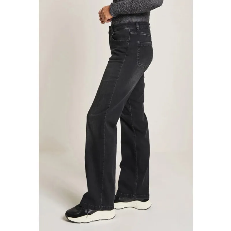 Eve is een 5-pocket model met een hoge taille en een wijde fit. De broek zit wijd op het bovenbeen en loopt daarna recht naar beneden. Deze broek heeft een stoere uitstraling en een fijne fit door het wijde model waardoor sneakers en boots extra leuk staan onder dit model. Een hak onder deze broek zorgt voor een modieuze uitstraling. Pasvorm: High Waist / Wide Leg Kwaliteit: Maak kennis met de Daily Denims lijn van Para Mi! Een groot aanbod van diverse denim kwaliteiten en wassingen die gemaakt zijn van katoen en elastaan. De broeken hebben een hoog draagcomfort door de elastische stof en de mooie pasvorm. Details: Een metalen decoratieve knoop aan de voorzijde en een vegan leren patch siert de achterkant van de tailleband. Sluiting: Knoop- en ritssluiting. Zakken: 5-pocket voor- en achterzakken.Kleur: Used Black Materiaal: 86% katoen, 12% polyester, 2% Elastaan Lengte 32 Pasvorm: High Waist / Wide Leg