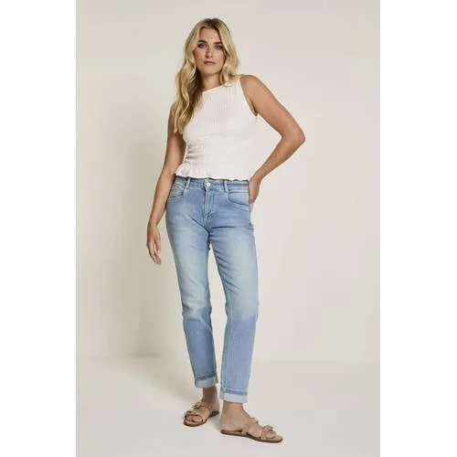 De Para Mi Bowie jeans is een praktische basis voor elke dag. Deze damesjeans in light blue denim heeft een regular waist en een regular fit, waardoor de broek aansluit zonder strak aan te voelen. De lichte wassing geeft een rustige look die makkelijk combineert met je favoriete T-shirt, blouse of trui. Dankzij de lange lengte valt de broek over je schoen, of je nu sneakers, laarsjes of sandalen draagt.Details die elke dag kloppen Regular fit met regular waist voor een comfortabele, vrouwelijke pasvorm Light blue denim kleur met effen uitstraling, ideaal als basis in je garderobe Gemaakt van 98% katoen en 2% elastaan voor een stevige stof met lichte stretch Klassieke 5-pocket styling met praktische zakken voor en achter Rits- en knoopsluiting en riemlussen, zodat je eenvoudig een riem kunt toevoegen Lange pijpen die langs het been vallenEen jeans voor alledaags gebruikDeze Bowie jeans is geschikt voor uiteenlopende momenten op de dag. Naar je werk met een nette blouse, in het weekend met een simpele top of tijdens een citytrip met een trui. De lichte stretch in het denim geeft bewegingsvrijheid tijdens het zitten, lopen en fietsen.Para Mi: specialist in damesjeansPara Mi richt zich volledig op damesbroeken. De pasvormen worden met zorg ontwikkeld, zodat de jeans goed aansluit. Door de combinatie van katoen en elastaan blijft de stof aangenaam aanvoelen, ook bij dagelijks gebruik.Een spijkerbroek die je garderobe rustig en overzichtelijk houdt.