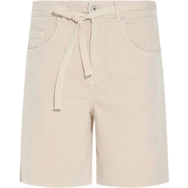 Mira Short heeft een hoge taille. De broek zit ruim bij de bovenbenen en heeft een extra breed uitlopende pijp. Pasvorm: High waist / Wide fit Kwaliteit: Summerlight kwaliteit is gemaakt van katoen, modal, polyester en elastaan. De geweven kwaliteit is op een speciale manier geverfd om een vintage gewassen uitstraling te creëren. Details: Mira heeft een metalen knoop en rivets. Op de achterkant van de tailleband zit een patch. Met los riempje. Sluiting: Knoop- en ritssluiting. Zakken: Voor- en achterzakken.Kleur: Sand Materiaal: 75% katoen, 12% MD, 9% Polyester, 4% Elastaan Het model is 1,75 meter lang en draagt hier maat 36