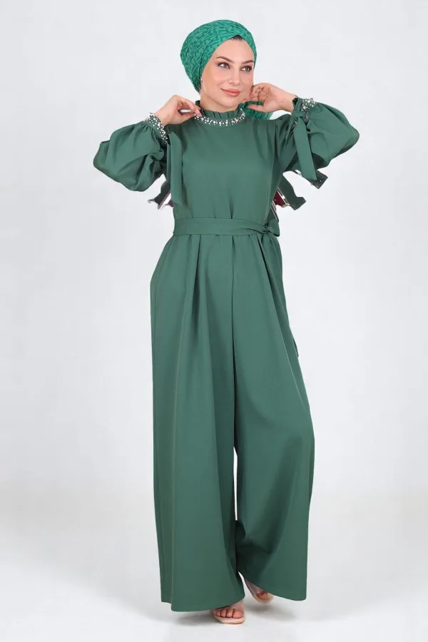 Parel Detailed Jumpsuit-jurk Smaragdgroen