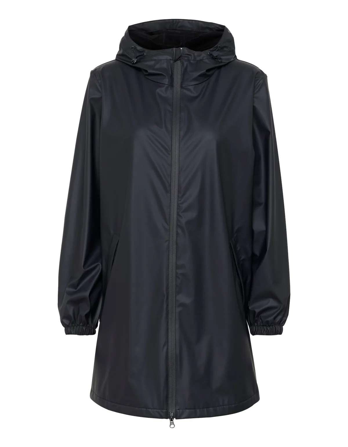 Type mantel: Regenjas; Design: Ritssluiting, Elastische taille/zoom, Rechte zoom, Capuchon met trekkoord, Zakken aan de zijkant; Type sluiting: Ritssluiting; Voering: Niet gevoerd; Motief: Effen; Extra's: Op staal naden; Pasvorm: Losse pasvorm; Lengte: Normale lengte