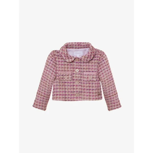 Een erg mooie en chic jas, colbert van tweestof in verschillende roze tinten. Dit meisjesjas van van Patachou en is erg leuk te combineren met de bijpassende rok. Patachou is een kinder label die gespecialiseerd in perfect matchende set voor meisjes en babies.