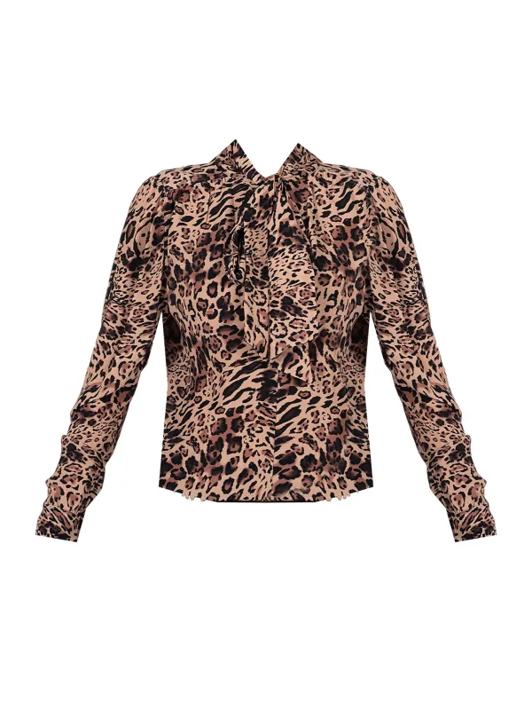 Eenvoudige stijl Fijn transparant Met dierenmotief V-hals met bies Lange, gezwollen mouwen Manchetten met knoopsluiting Gemaakt van hoogwaardige stof