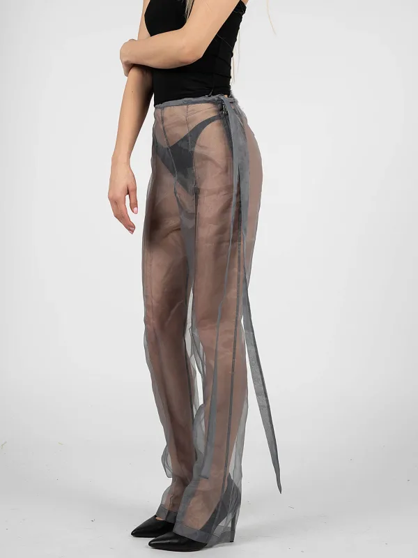 Eenvoudige stijl Transparant Hoge taille Met een subtiele glans Met verborgen, kenmerkende ritssluiting aan de linkerkant Extra band in de taille Een naad langs de voorkant van de benen Gemaakt van hoogwaardige stof Gemaakt in Italië