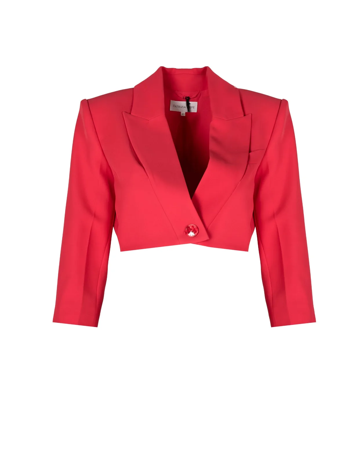 Kort en aansluitend gesneden, ideaal om het silhouet te benadrukken, voegt het elegantie en moderniteit toe aan elke outfit en zorgt ervoor dat je je zelfverzekerd en stijlvol voelt in elke situatie. Hij sluit met een knoop met label, wat niet alleen praktisch is, maar ook een subtiel designaccent toevoegt dat een vleugje luxe en prestige aan je look geeft. Met een 7/8 mouw, een uitstekende keuze voor elk seizoen, biedt het bewegingsvrijheid en de mogelijkheid om je favoriete sieraden te laten zien, wat elegantie en gemak toevoegt aan de algehele look. De vulling en voering zorgen niet alleen voor een perfecte vorm en comfort, maar benadrukken ook de zorg voor vakmanschap en aandacht voor detail waarmee dit product zich onderscheidt van andere. Gemaakt van hoogwaardige stof die duurzaamheid en kreukbestendigheid garandeert, zodat het kledingstuk er altijd onberispelijk uitziet en comfortabel is om te dragen. Made in Italy, synoniem voor uitmuntend vakmanschap en een lange modetraditie, garandeert dat elk element met uiterste precisie en passie is vervaardigd.