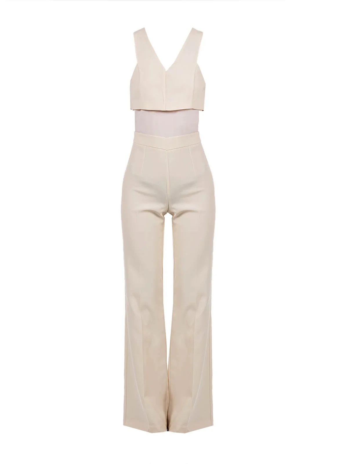 Getailleerde snit Sluit aan de achterkant met een kenmerkende ritssluiting V-hals Mouwloos Aansluitend Uitlopende broekspijpen Broekspijpen met rand Gemaakt van hoogwaardige stof met extra stretch Gemaakt in Italië