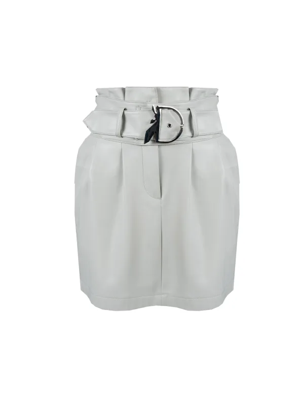 Een korte rok met een recht model is de ideale keuze voor wie van klassiek houdt en tegelijkertijd een vleugje moderne chic aan zijn garderobe wil toevoegen; het minimalistische ontwerp maakt hem perfect te combineren met zowel casual als elegantere outfits en biedt onbeperkte modemogelijkheden. Met figuurnaden die het silhouet subtiel benadrukken, biedt deze rok niet alleen een perfecte pasvorm maar voegt hij ook een vleugje verfijning toe, waardoor het de ideale keuze is voor elke gelegenheid. Met twee steekzakken die niet alleen functionaliteit toevoegen, maar ook het moderne karakter benadrukken en ruimte bieden voor kleine spullen die je altijd bij de hand moet hebben. Gesloten met drukknopen en een ritssluiting, waardoor hij niet alleen comfortabel is om te dragen, maar ook altijd op zijn plaats blijft zitten, ongeacht de intensiteit van de dag of avonduitstapjes. Voorzien van een riem met een decoratieve gesp die elegantie toevoegt aan de algehele look en de taille subtiel benadrukt, wat ook een opvallend accent is dat de aandacht trekt en karakter toevoegt aan elke outfit. Gemaakt van hoogwaardig kunstleer is deze rok niet alleen milieuvriendelijk maar ook bijzonder duurzaam en gemakkelijk te onderhouden, waardoor het de ideale keuze is voor mensen die van duurzame mode houden zonder afbreuk te doen aan stijl.