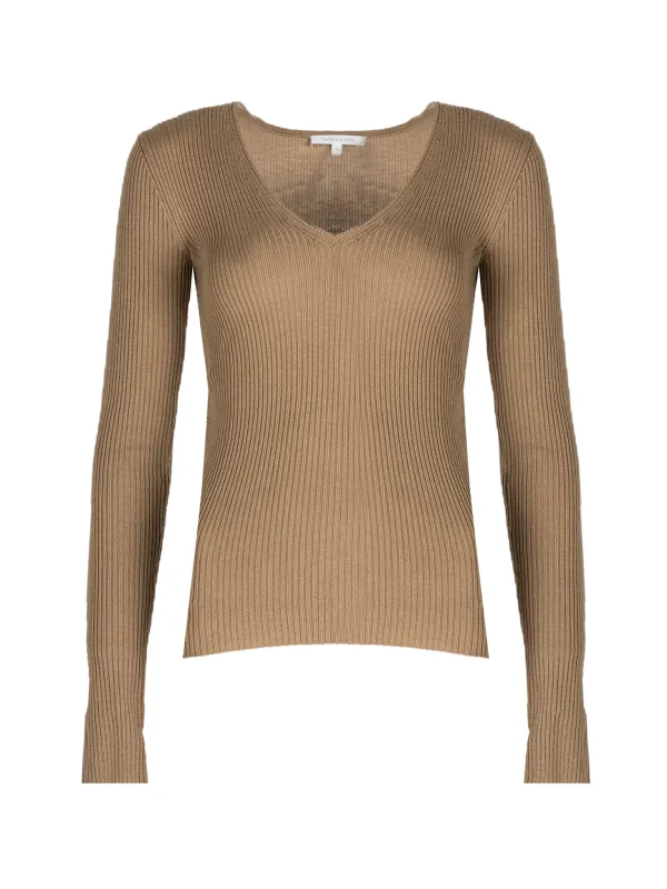 Wollen Passend model V-hals Hals afgewerkt met ribboord Met gestreept patroon Merknaam aan de linkerkant Gemaakt van hoogwaardige wol