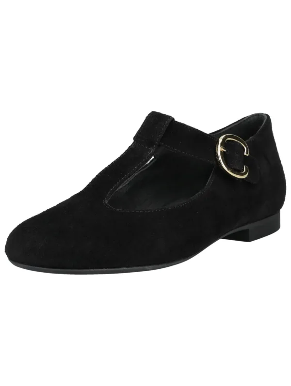 Type sluiting: Gesp; Type hak: Blokhak; Materiaal: Leer; Motief: Effen; Materiaal: Suède; Schoenneus: Ronde neus; Hakhoogte: Platte hak (0-3 cm)