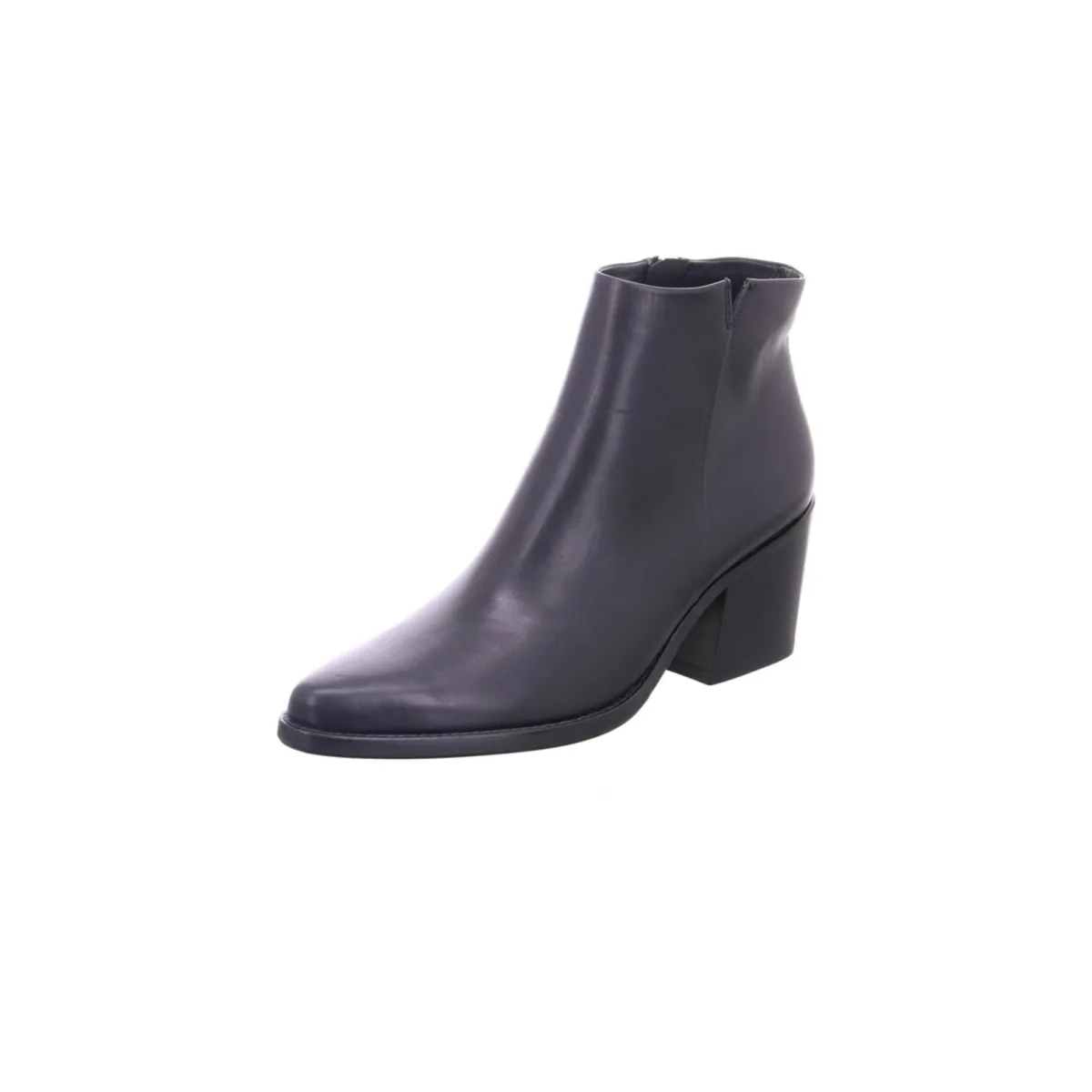 Design: Enkelhoog; Type sluiting: Ritssluiting; Type hak: Blokhak; Materiaal: Leer; Motief: Effen; Materiaal: Glad leer; Schoenneus: Spitse neus; Extra’s: Gladde stof; Hakhoogte: Middelhoge hak (3-7 cm)