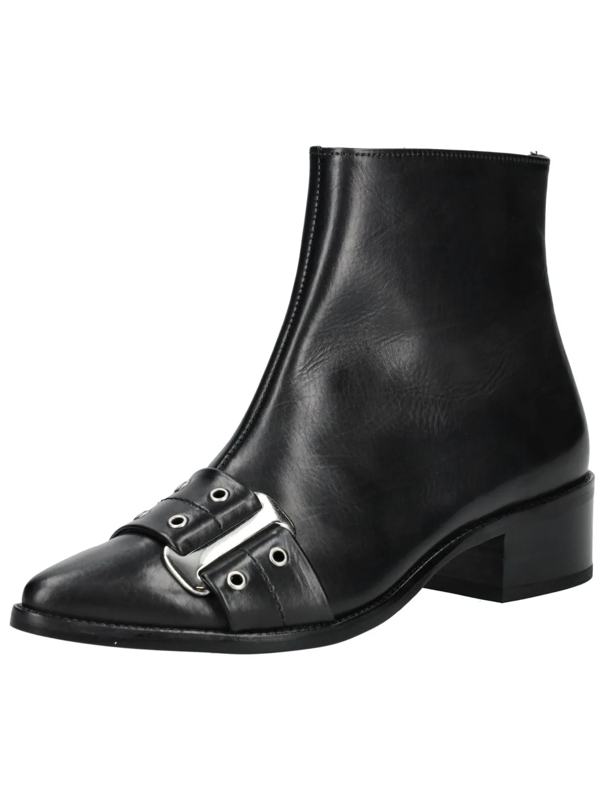 Design: Pumps met enkelbandje; Type sluiting: Ritssluiting; Type hak: Blokhak; Materiaal: Leer; Motief: Effen; Materiaal: Glad leer; Schoenneus: Ronde neus; Extra's: Applicaties, Op staal naden; Hakhoogte: Middelhoge hak (3-7 cm)