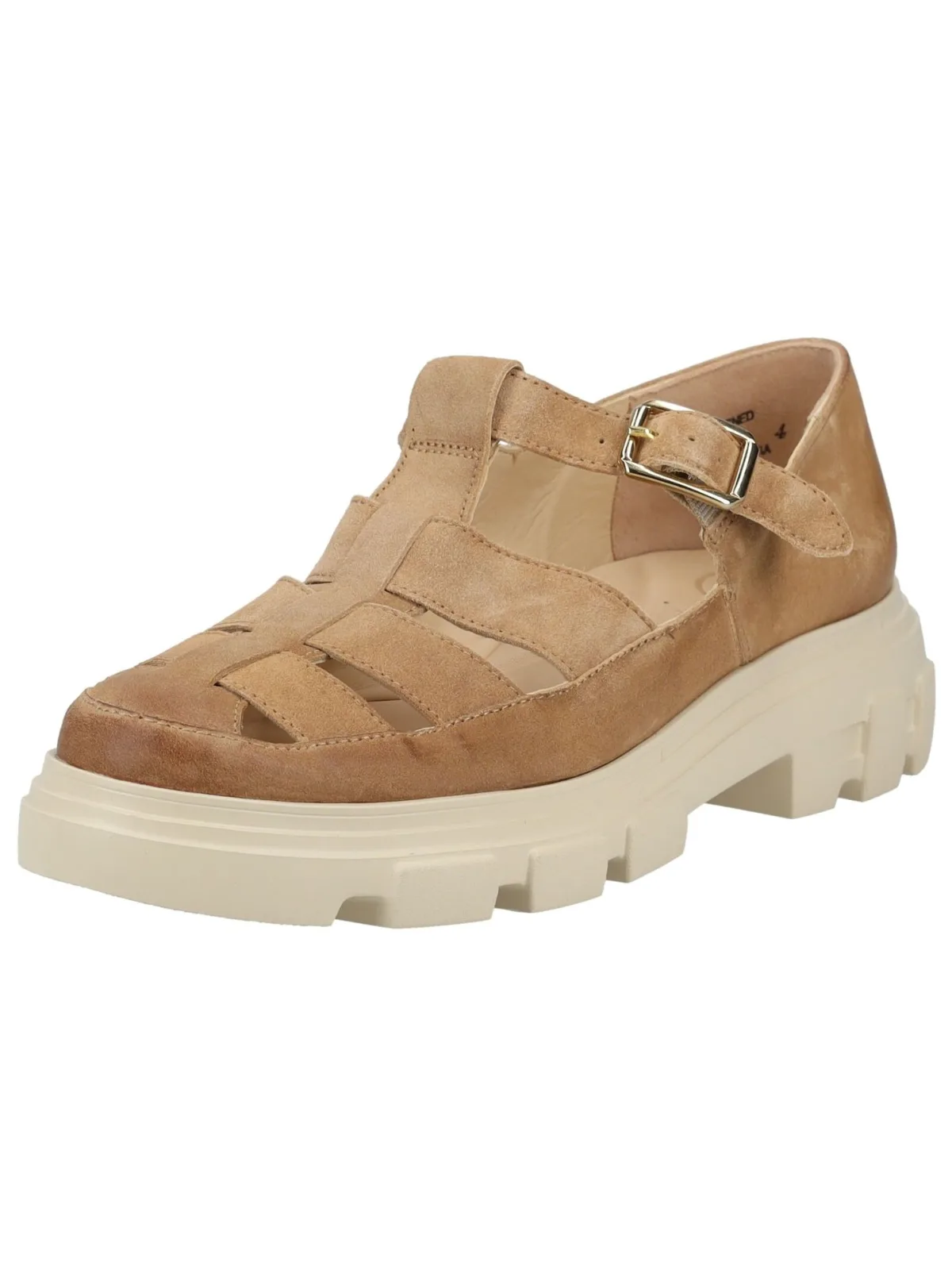 Design: Profielzolen, Verstelbare riemen; Type sluiting: Gesp; Type hak: Blokhak; Materiaal: Leer; Motief: Effen; Plateau: Met plateau; Materiaal: Suède; Schoenneus: Ronde neus; Extra's: Op staal naden, Flexibele zool; Hakhoogte: Middelhoge hak (3-7 cm)
