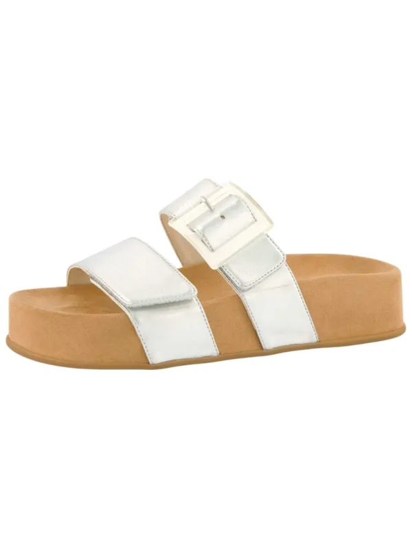 Design: Verstelbare riemen, Elastische inserts; Type sluiting: Slip; Materiaal: Imitatieleder; Motief: Effen; Plateau: Met plateau; Materiaal: Imitatieleer; Schoenneus: Open toe; Extra's: Gladde stof, Flexibele zool; Hakhoogte: Platte hak (0-3 cm)