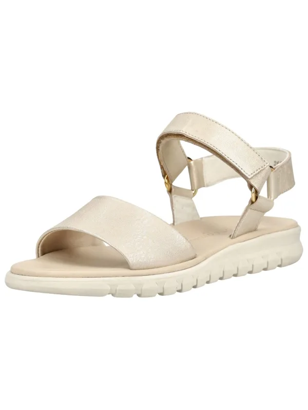 Design: Gevoerd, Profielzolen; Type sluiting: Velcro sluiting; Type hak: Sleehak; Materiaal: Leer; Motief: Effen; Materiaal: Glad leer; Schoenneus: Open toe; Extra's: Glinsterend, Flexibele zool; Hakhoogte: Middelhoge hak (3-7 cm)