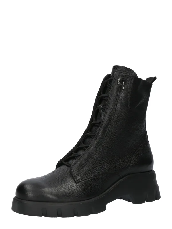Design: Ritszakken aan de zijkant, Profielzolen, Hielband; Type sluiting: Snoersluiting; Type hak: Blokhak; Materiaal: Leer; Motief: Effen; Materiaal: Glad leer; Schoenneus: Ronde neus; Extra's: Korrelig leder, Anti-slip zool; Hakhoogte: Middelhoge hak (3-7 cm)