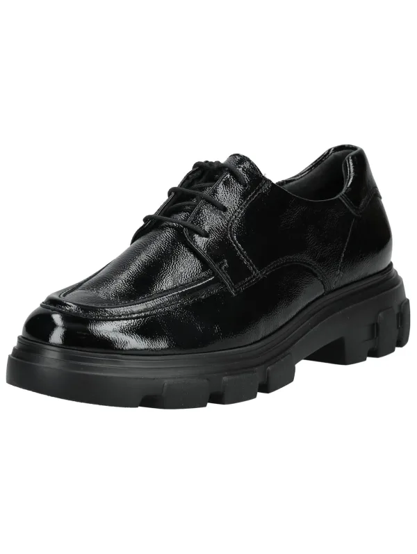 Design: Versterkte hak; Type sluiting: Snoersluiting; Type hak: Blokhak; Materiaal: Leer; Motief: Effen; Materiaal: Lak; Schoenneus: Ronde neus; Extra's: Glanzend; Hakhoogte: Middelhoge hak (3-7 cm)