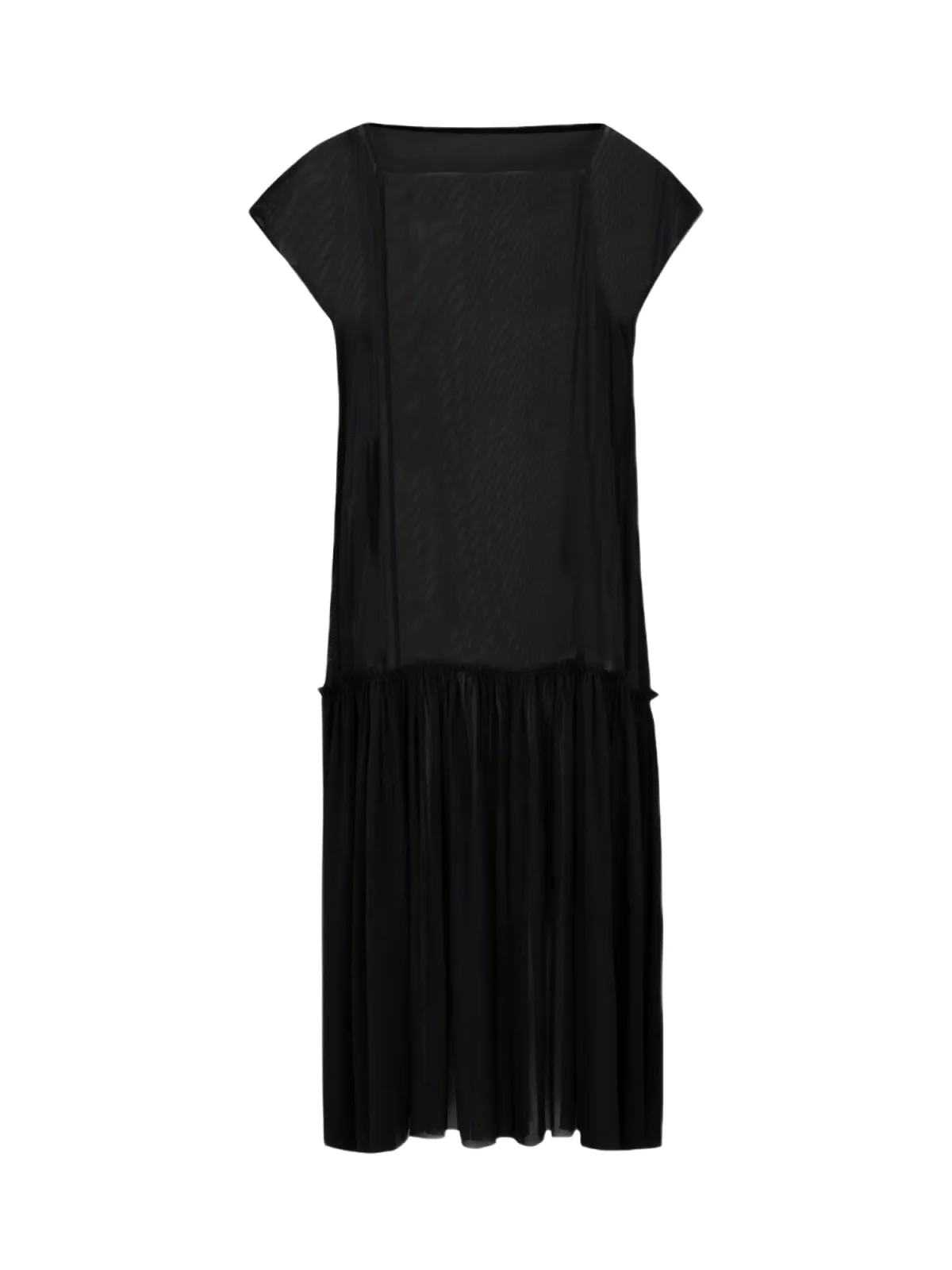 Design: Rechte zoom; Halstype: Carréhals; Motief: Effen; Details: Gedrapeerd; Extra's: Transparant, Op staal naden; Lengte: 3/4 lengte; Snit: Recht; Pasvorm: Normale pasvorm; Armlengte: Kwartmouw