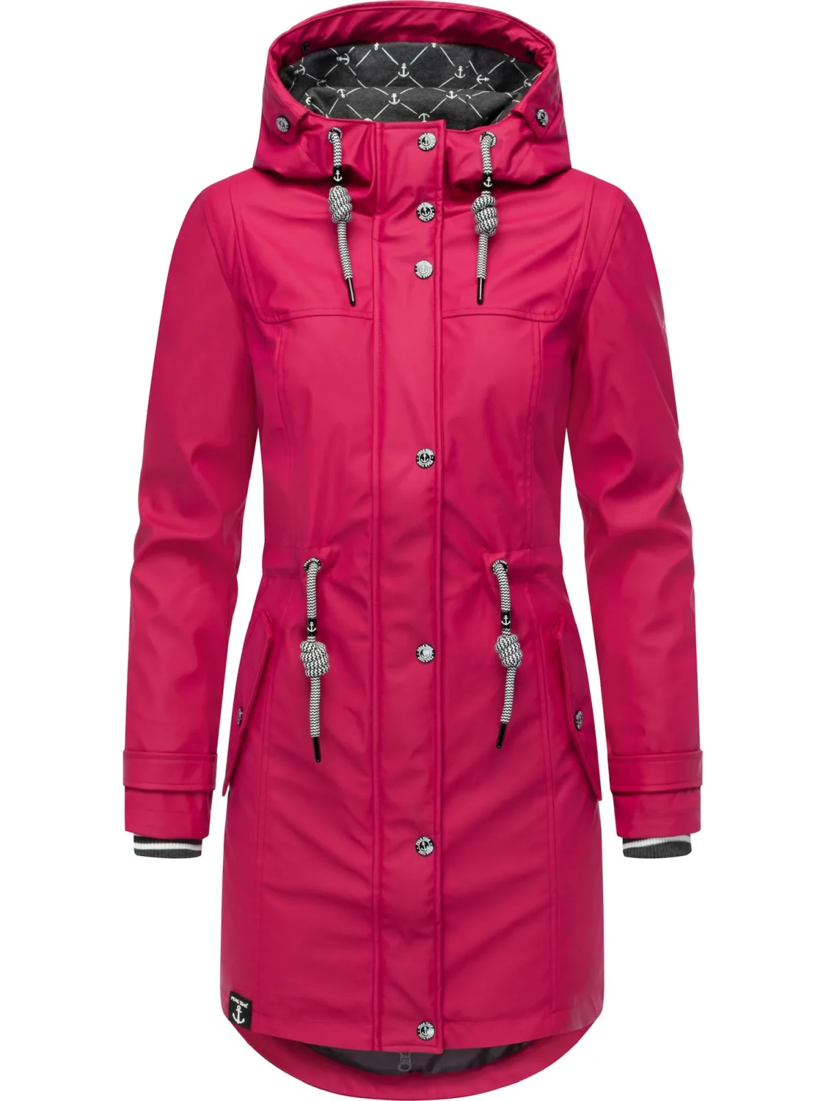 Type mantel: Regenjas; Design: Ronde zoom; Type sluiting: Ritssluiting; Type jas: Regenjas; Voering: Licht gevoerd; Motief: Effen; Capuchon: Met capuchon; Extra's: Verstelbare taille; Details: Met hoge stormkraag; Pasvorm: Slanke pasvorm; Lengte: Normale lengte