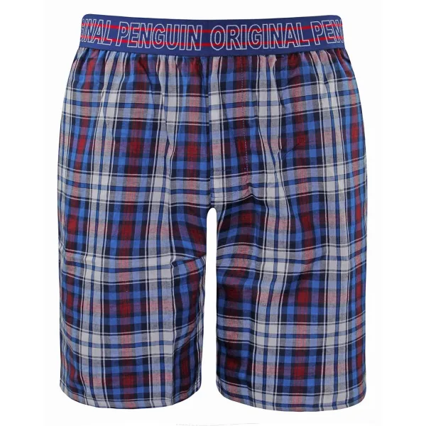 Originele Penguin Stretch Taille Blauw Rood Heren Geruite Lounge Shorts MLHPE687
