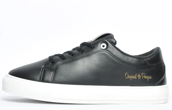 De Arrow trainer van het iconische mannenmerk Original Penguin is helemaal in en een must have in je garderobe. Deze herentrainers zijn gemaakt van een glad, zwart synthetisch bovenwerk met de kenmerkende Penguin Original-branding op de zijkant en tong en hebben een on trend styling die gegarandeerd van seizoen tot seizoen meegaat. De vetersluiting met 6 oogjes zorgt voor een persoonlijke pasvorm, terwijl de gewatteerde enkel en gepolsterde binnenzool ervoor zorgen dat je voeten de hele dag onbelast blijven. De contrasterende witte buitenzool van gevulkaniseerd rubber geeft de Penguin Arrow die authentieke trainer-look, terwijl hij ook geweldige tractie en grip biedt op een grote verscheidenheid aan ondergronden. Met de slanke, sportieve en gestroomlijnde Penguin Arrow val je in een mum van tijd op tussen de massa en sta je hoog in de stijlklassiekers. - Synthetisch bovenwerk - Binnenzool van schuimrubber - Gewatteerde enkel en hielkraag - Voering van textiel - Gevulkaniseerde rubberen buitenzool - Overal Penguin Original