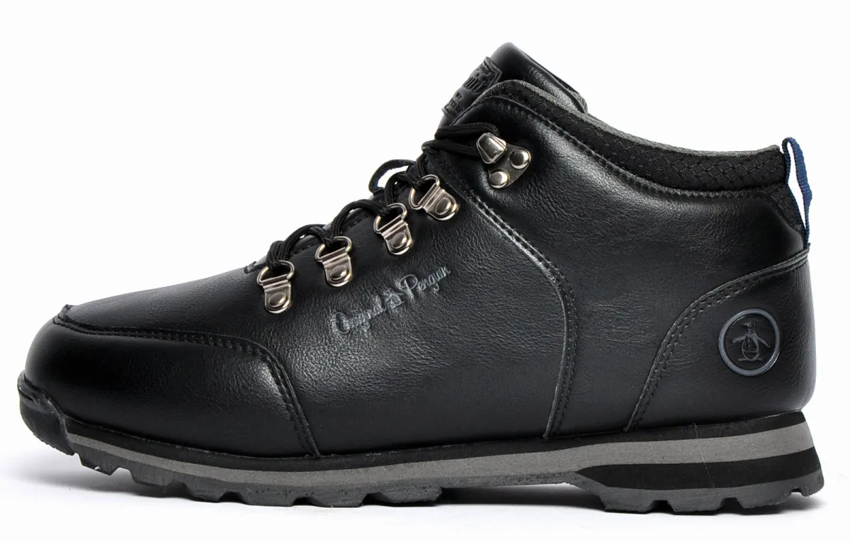 Deze Ember boots van Penguin Original bieden een alternatieve urban look voor de man die op zoek is naar een betrouwbaar en extreem comfortabel paar casual boots. Met een duurzame synthetische bovenkant met details in hiker-stijl en gestikte paneel overlays, afgewerkt met de branding van Original Penguin aan de zijkant, tong en hak om de herkenning te geven die deze boots verdienen. Deze comfortabele boots hebben een gevoerde kraag en tong met een hiker-stijl vetersluiting, afgewerkt met een slijtvaste rubberen loopzool, die uitstekende grip en tractie bieden op een breed scala aan oppervlakken. - Synthetische/textiele bovenkant - Hiker-stijl vetersluiting - Licht gevoerde enkel en tong - Slijtvaste rubberen loopzool - Branding van Penguin Original