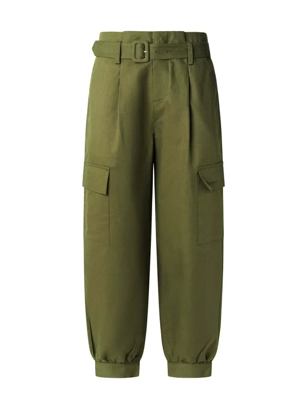 Design: Cargozak, Met riem; Type sluiting: Ritssluiting; Materiaal: Katoen; Motief: Effen; Details: Plooien; Extra's: Op staal naden, Gladde stof; Lengte: 7/8 lengte; Pasvorm: Tapered; Taillehoogte: Mid waist