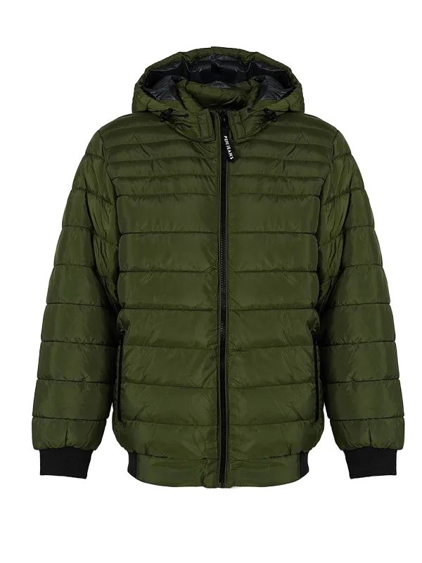 Eenvoudige stijl Gewatteerd patroon Met capuchon Afneembare capuchon met trekkoord voor verstellen Mouwen en onderkant met geribde boorden Sluit met een opvallende ritssluiting Twee voorzakken met ritssluiting Binnenin een zak met drukknoopsluiting Een bedrijfspatch op de linkermouw Gemaakt van hoogwaardige waterdichte stof Gevoerd met synthetische veren