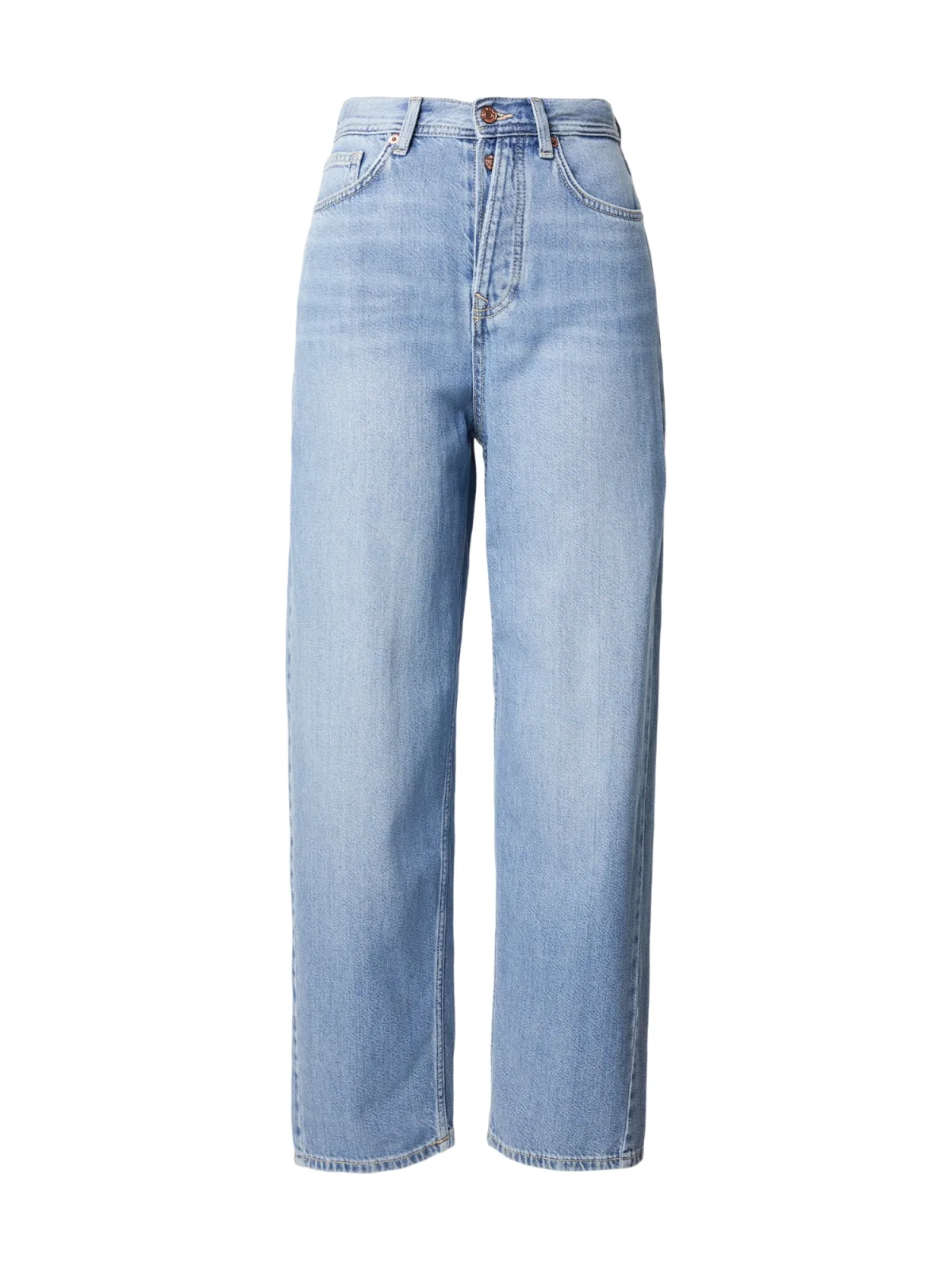 Dames tapered fit jeans van Pepe Jeans;Model 'Addison';look: denim;Pasvorm: tapered;Taillehoogte: high waist;Applicatie: labelpatch;Details: riemlussen;Sluiting: knoop en verborgen ritssluiting;Zakken (onderstuk): 5-pocketmodel;Materiaalverwerking: twill;Materiaal: katoenmix