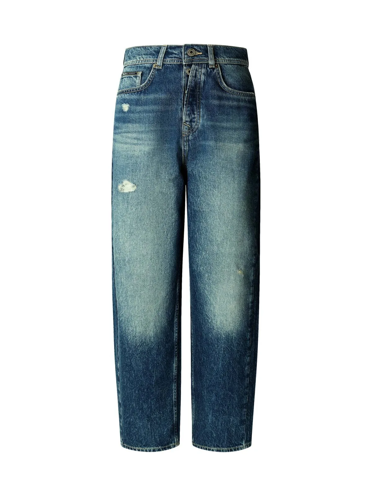 Design: Gevoerde zoom/rand, 5-pocket-style; Type sluiting: Ritssluiting; Materiaal: Denim; Motief: Effen; Extra's: Contrasterende naden, Label patch/label flag, Riemlussen; Wassing: ripped; Lengte: Lang/maxi; Pasvorm: Baggy; Taillehoogte: High waist