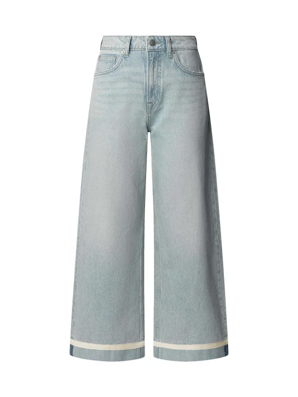 Design: Ritssluiting, 5-pocket-style; Type sluiting: Knoopsluiting; Materiaal: Katoen; Motief: Effen; Details: Wikkel design; Extra's: Riemlussen; Wassing: Blauw denim; Lengte: Lang/maxi; Pasvorm: Wide leg; Taillehoogte: High waist