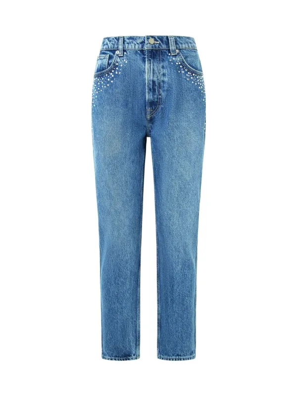 Design: Knop placket, 5-pocket-style; Type sluiting: Ritssluiting; Materiaal: Katoen; Motief: Effen; Extra's: Op staal naden, Riemlussen; Wassing: Blauw denim; Lengte: Lang/maxi; Pasvorm: Slimfit; Taillehoogte: Mid waist