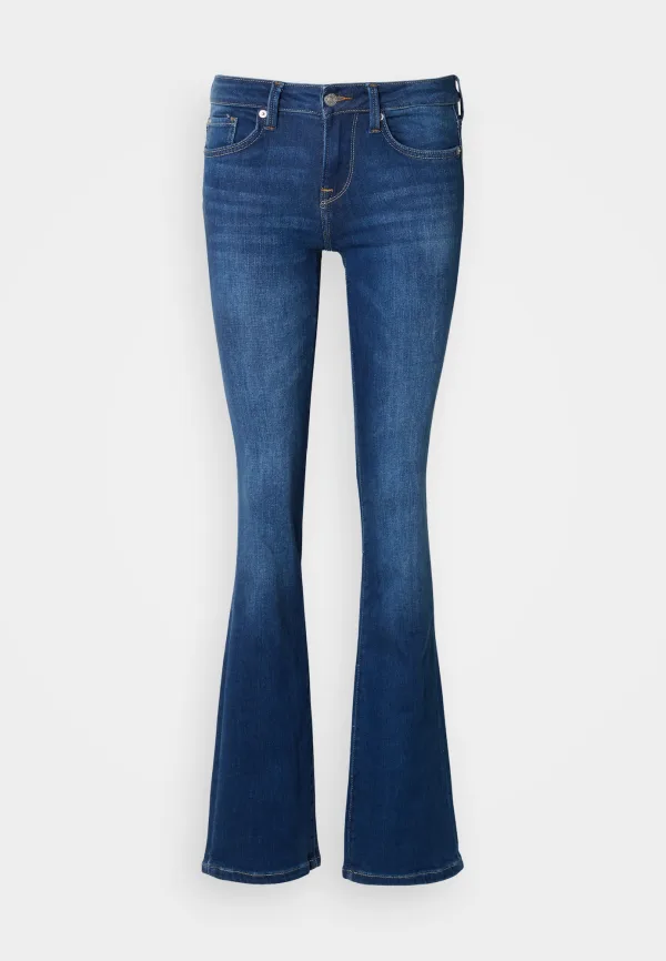 Design: Verborgen rits, 5-pocket-style; Type sluiting: Knoopsluiting; Materiaal: Denim; Motief: Effen; Extra's: Studs, Contrasterende naden, Riemlussen; Wassing: Heavy washed; Lengte: Lang/maxi; Pasvorm: Bootcut; Taillehoogte: Mid waist