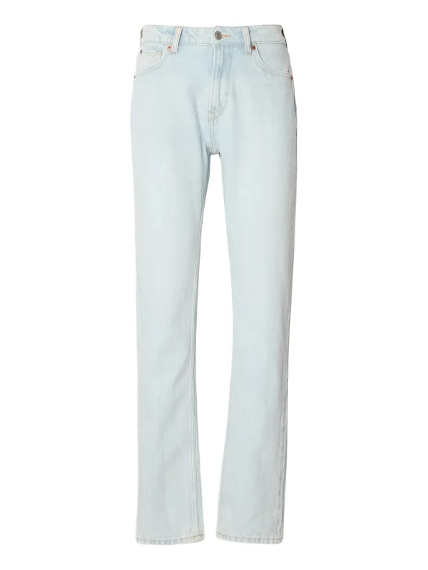 Design: Gevoerde zoom/rand, Ritssluiting, 5-pocket-style; Type sluiting: Ritssluiting; Materiaal: Denim; Motief: Effen; Extra's: Studs, Contrasterende naden, Label patch/label flag, Riemlussen; Wassing: Light washed; Lengte: Lang/maxi; Pasvorm: Regular; Taillehoogte: Mid waist