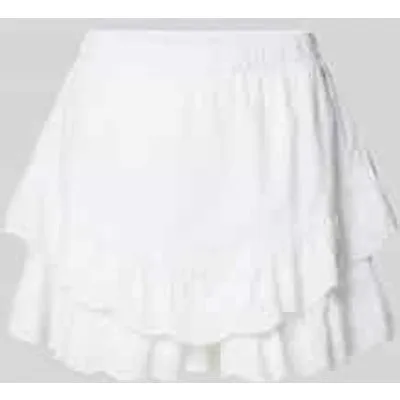 dames mini-rok van Pepe Jeans;model 'Camila';look: effen;pasvorm/model:: uitlopend;Lengte: mini;Applicatie: logo-applicatie van metaal;Details: ajourpatroondetails, korte inzet binnenin;boord: elastisch;Zoom: geschulpte zoom;Materiaal: puur katoen