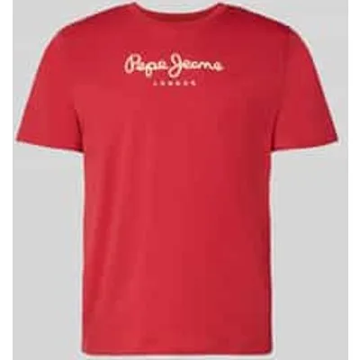 Heren T-shirt van Pepe Jeans;Model 'Eggo';Look: effen;Pasvorm: Regular Fit;Applicatie: Label Print, Label Patch;Hals: ronde hals;Mouwvorm: kortemouw;Materiaalverwerking: Jersey;Materiaal: puur katoen