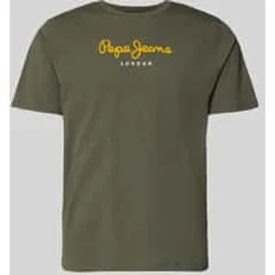 Heren T-shirt van Pepe Jeans;Model 'Eggo';Look: effen;Pasvorm: Regular Fit;Applicatie: Label Print, Label Patch;Hals: ronde hals;Mouwvorm: kortemouw;Materiaalverwerking: Jersey;Materiaal: puur katoen