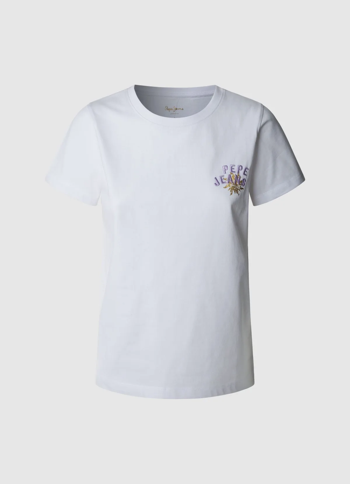 Korte mouw T-shirt met ronde hals en groot logo Pepe Jeans op de achterkant, en kleiner op de borst.