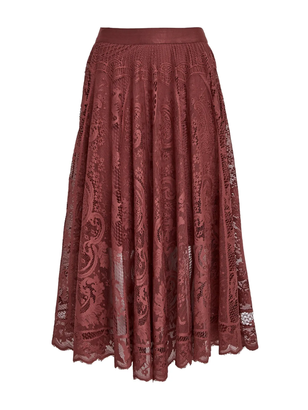 Design: Elastische taille/zoom, Open randen; Type sluiting: Gesloten; Rokvorm: Plooirok; Details: Kant; Extra's: Met textuur; Lengte: 3/4 lengte; Pasvorm: Normale pasvorm
