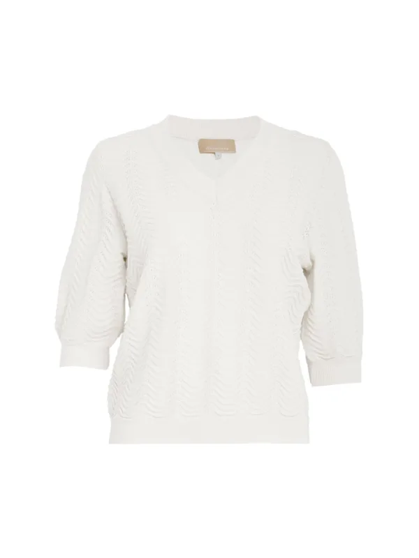 Design: Geribbelde kraag; Materiaal: Knitwear; Halstype: V-hals; Motief: Effen; Soort bandjes: Normale bandjes; Details: Mesh; Extra's: Fully fashioned; Pasvorm: Normale pasvorm; Armlengte: Halve mouw; Lengte: Normale lengte