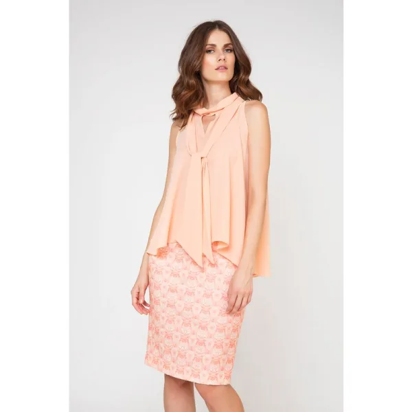 Omarm elegantie met een vleugje lente in onze Peach Blossom kokerrok. Deze rok is zorgvuldig gemaakt van een mix van 79% katoen voor ademend vermogen, 18% polyamide voor duurzaamheid en 3% elastaan voor de perfecte stretch, en biedt zowel comfort als een figuurflatterend silhouet. Het ingewikkelde kantpatroon verweeft perzikkleurige tinten die doen denken aan bloeiende bloemen, waardoor het een veelzijdig stuk is voor zowel een chique kantoor als een charmante avond. Combineer hem met een zachte blouse voor een gracieus ensemble dat moeiteloos van dag naar nacht gaat.